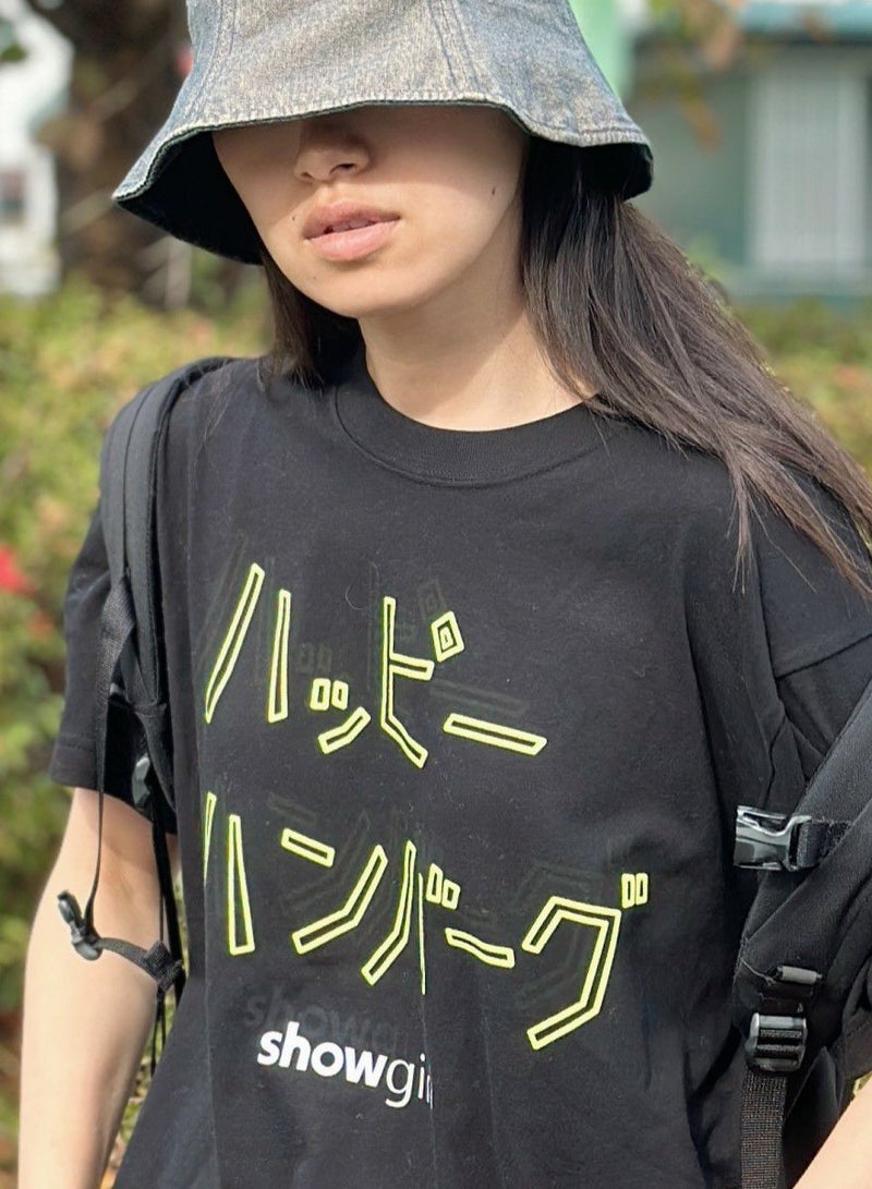 思わず声に出して言ってみたくなるハッピーハンバーグという言葉と、着ると少しハッピーになるshowgirlアイテム。ユーモアたっぷりの、限定コラボ商品で、皆様にハッピーハンバーグな日々が訪れますように。