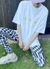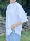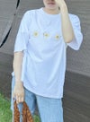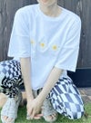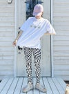 素材にこだわったMODAL/cotton TshirtにMargaretレギンスの花柄を3つ配置